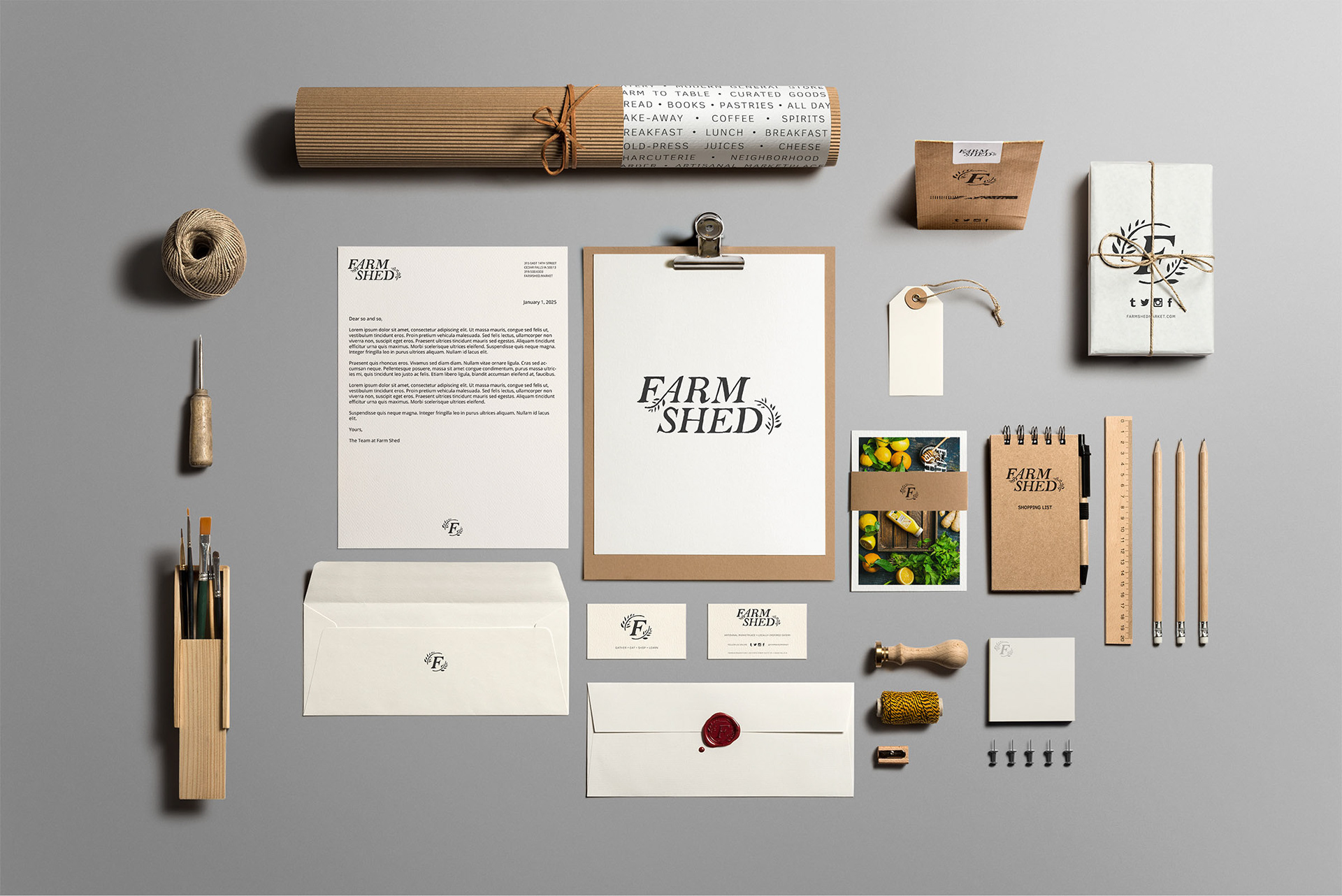 Farm Shed wanted a brand that conveyed a grassroots, salt of the earth aesthetic for their juice and grocery market. It needed to feel minimal, vintage, yet still with a modern touch.