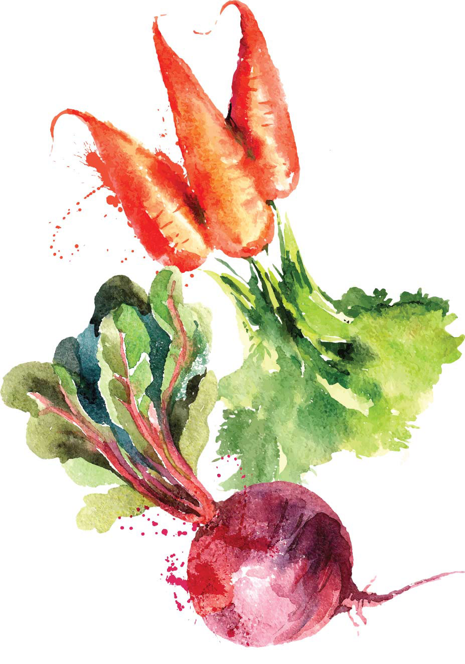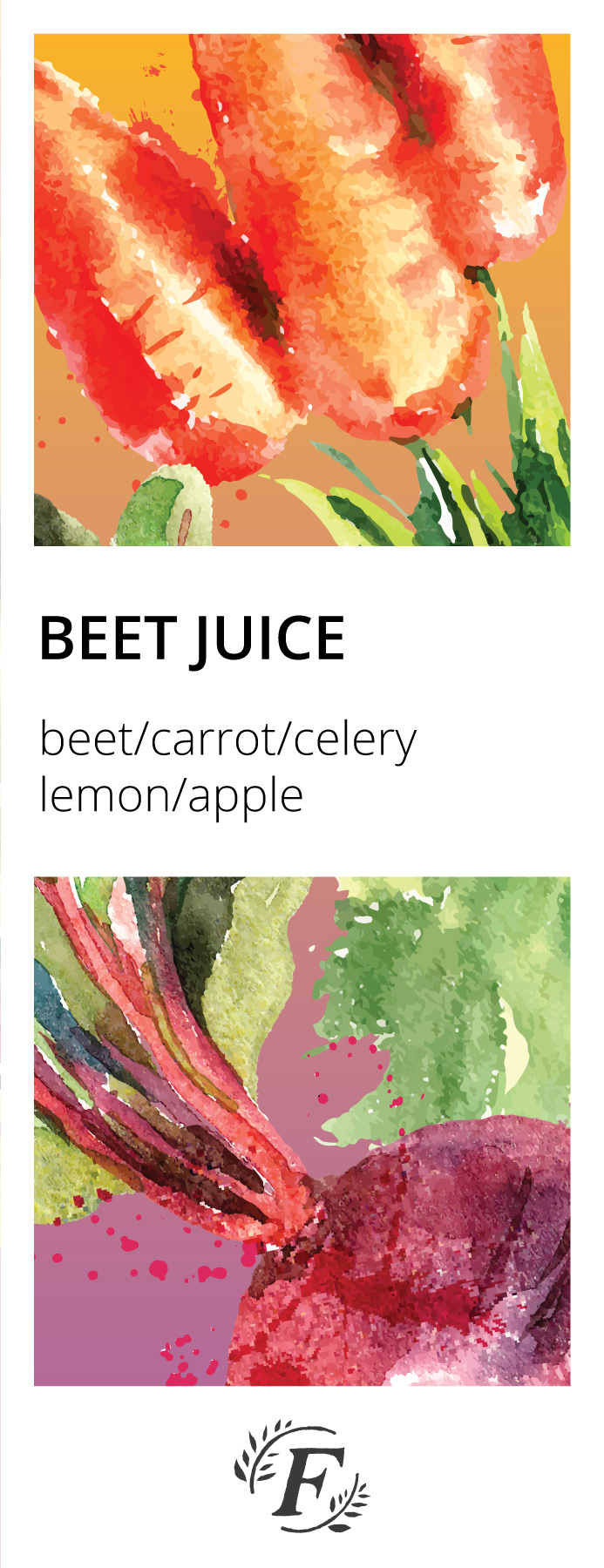 We selected several vintage watercolors to use in conjunction with Farm Shed's juice bottle labels.